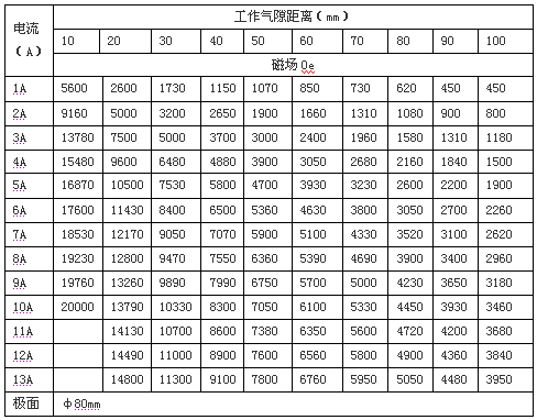 2.3 磁場(chǎng)強(qiáng)度: H≥0.5T,工作氣隙80mm時(shí)